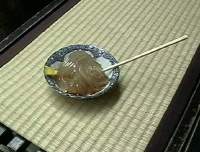 ![]() 弥彦の銘菓といえば玉兎田畑を荒らした兎が大神様に諌められ畏まっている姿をしています。昭和天皇に献上した品です。 お茶会にも用いられています。 |